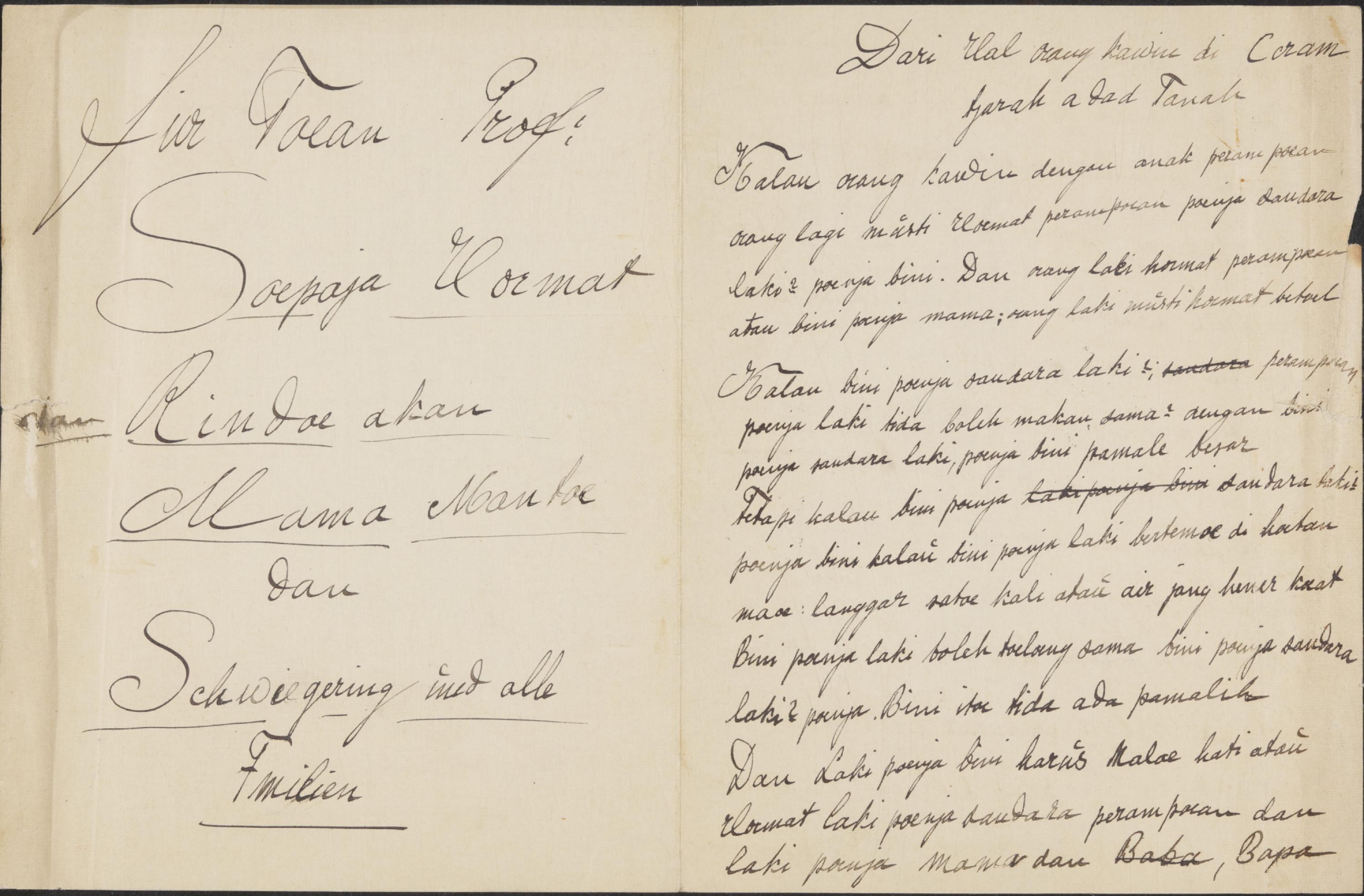Our knowledge about Mailopus’ life prior to his involvement in the II. Freiburg Moluccan Expedition is scarce. Yet, one event has been described even twice by Mailopu himself: the devastating earthquake that struck Seram on 30 September 1899, still remembered today as Bahaya Seram. In both his Paulohi manuscripts and his diary, Mailopu described what he experienced, making him an important eye witness for this catastrophic event. The earthquake struck the Elaputhi Bay area with immense force causing countless deaths. Although Mailopu provides different dates in the two sources—1899 in the Paulohi manuscripts and 1903 in the diary—the overlapping details strongly suggest both accounts refer to the well-documented earthquake in 1899. Mailopu's records provide information about the earthquake and its devastating effects on the local population. Through his writings, Mailopu offers rare insight into the destruction and human toll of the disaster. They preserve not only the memory of a natural catastrophe but also the perspective of a local witness of the time.